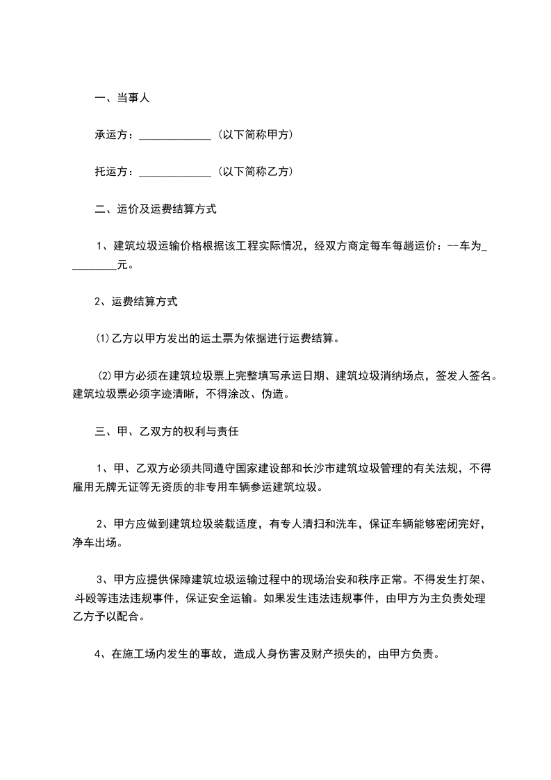 三、甲方应把日常垃圾按乙方指定地点装入桶内,乙方负责清运。否则可不运。