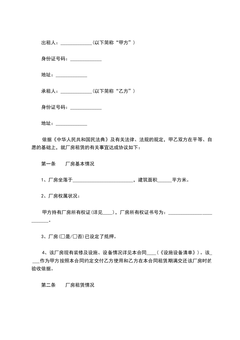 七、厂房设施因自然老化损坏、不可抗拒的自然灾害和国家政策的变化致使乙方无法生产可终止合同,并甲方不得要求乙方有任何责任及赔偿。厂房如损坏,乙方想继续履行合同,甲乙双方协商维修。合同期满对厂房的正常损坏,甲方不得要求乙方任何责任。