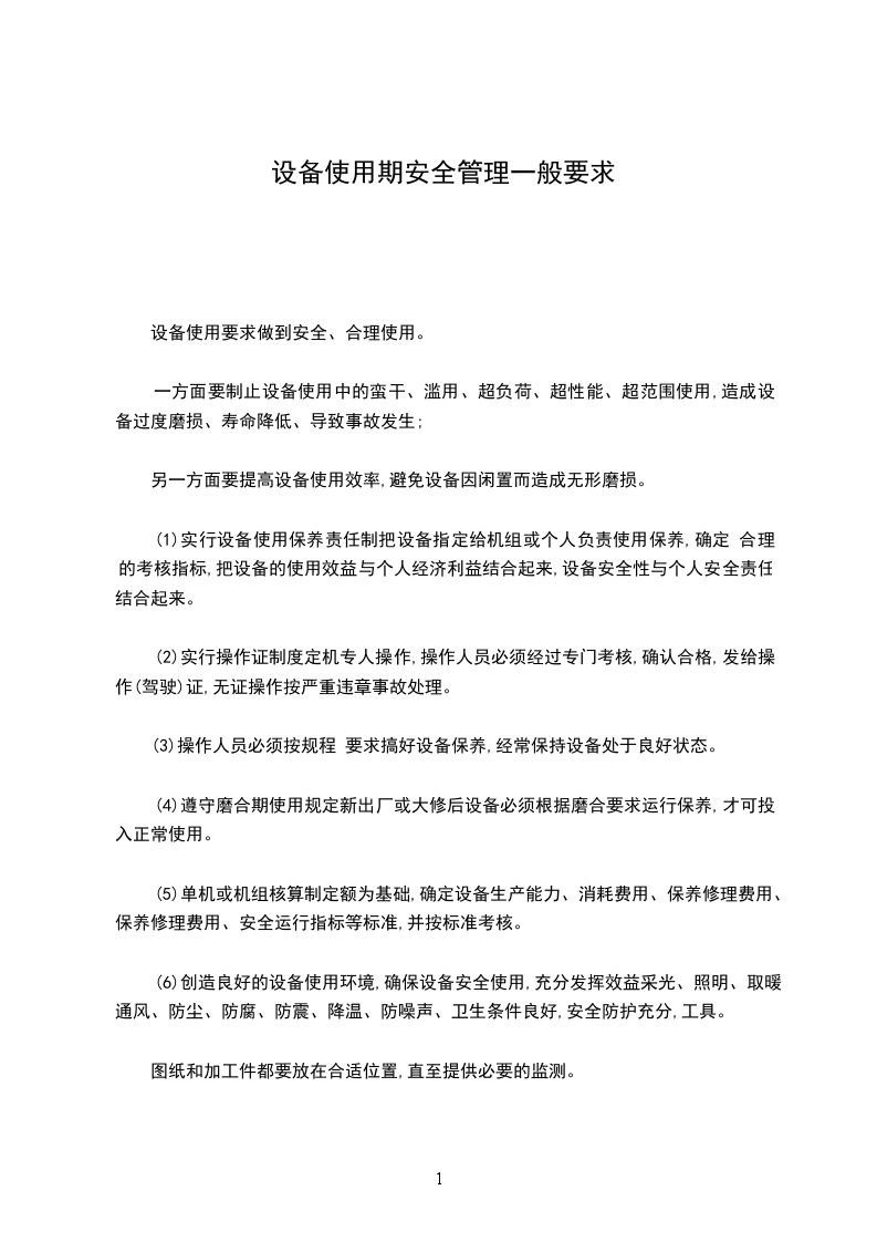 (1)实行设备使用保养责任制把设备指定给机组或个人负责使用保养,确定 合理的考核指标,把设备的使用效益与个人经济利益结合起来,设备安全性与个人安全责任结合起来。