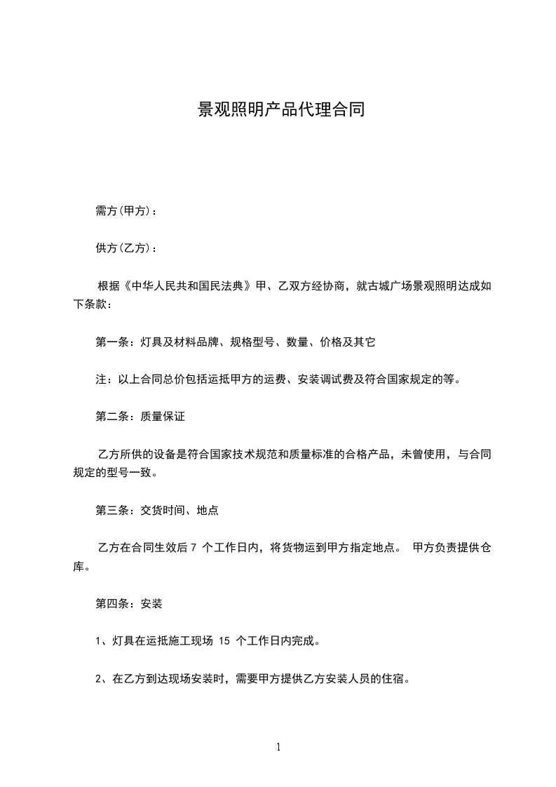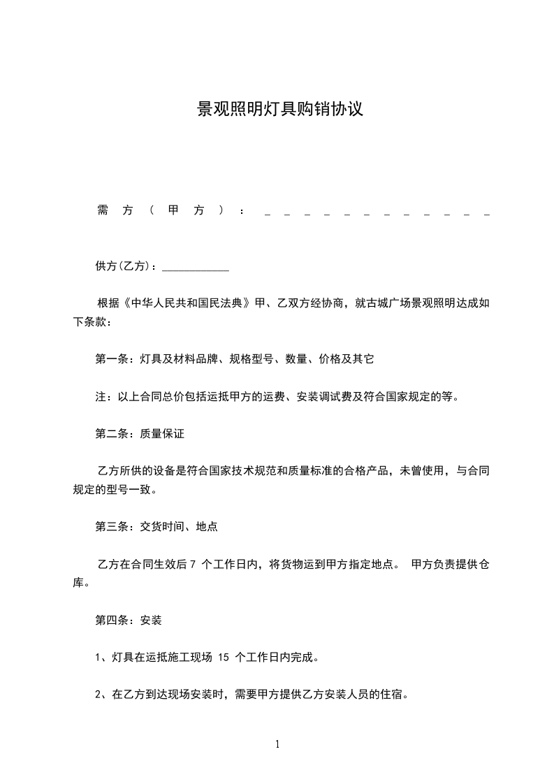 根据《中华人民共和国民法典》甲、乙双方经协商,就古城广场景观照明达成如下条款: