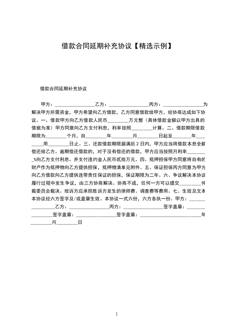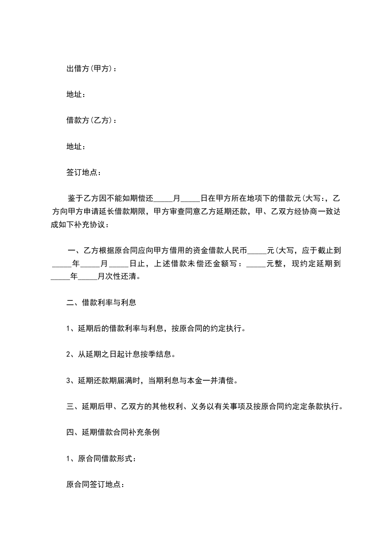 四、延期借款合同补充条列