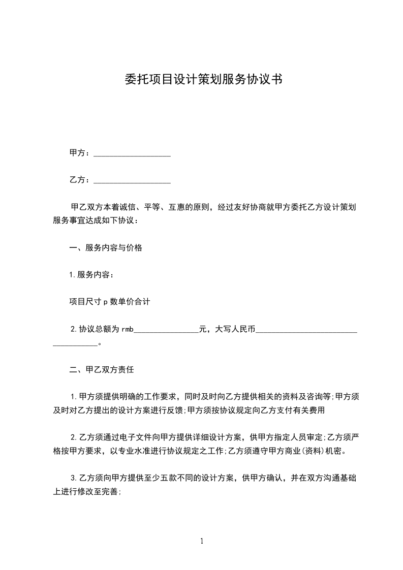 甲乙双方本着诚信、平等、互惠的原则,经过友好协商就甲方委托乙方设计策划服务事宜达成如下协议: