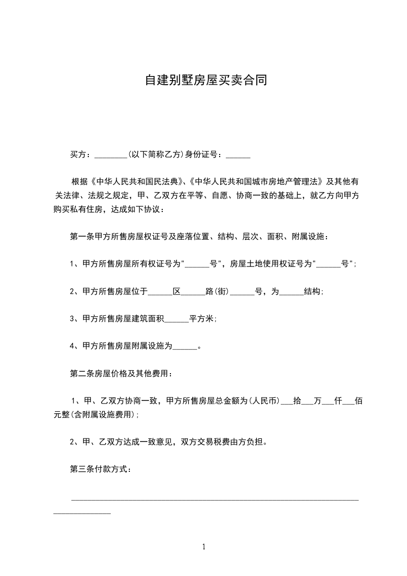 1、甲、乙双方协商一致,甲方所售房屋总金额为(人民币)___拾___万___仟___佰元整(含附属设施费用);