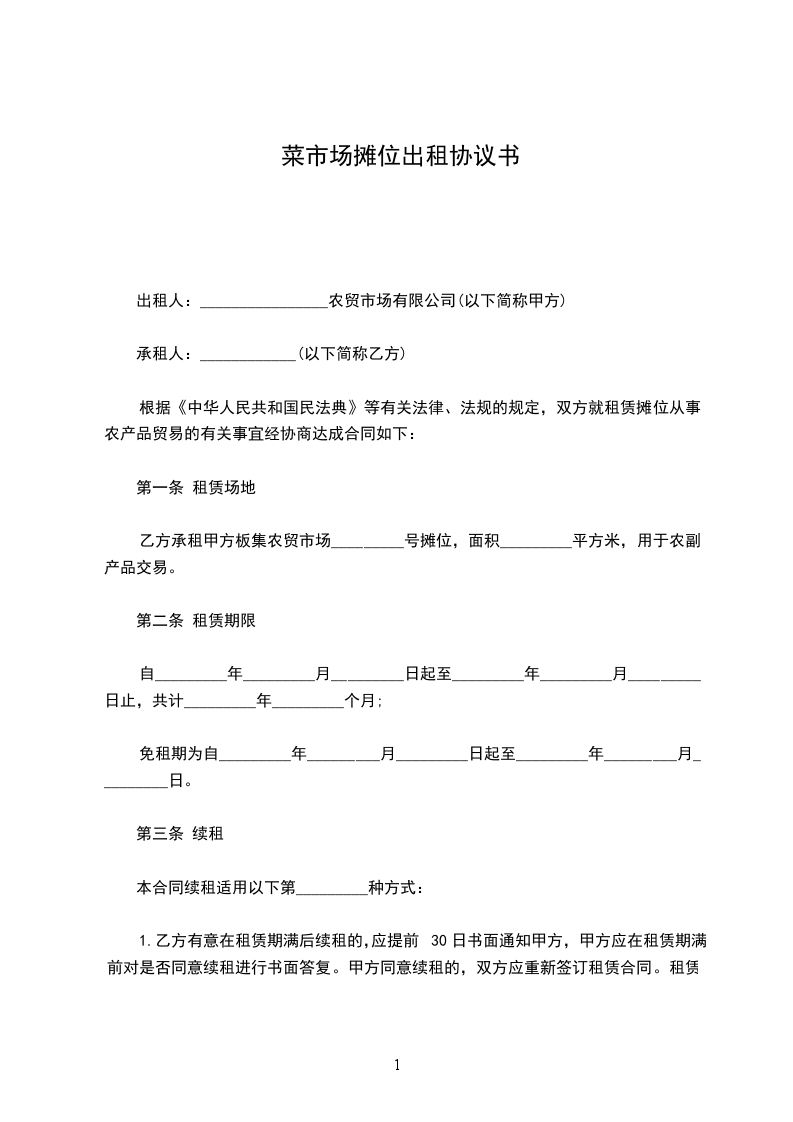 根据《中华人民共和国民法典》等有关法律、法规的规定,双方就租赁摊位从事农产品贸易的有关事宜经协商达成合同如下: