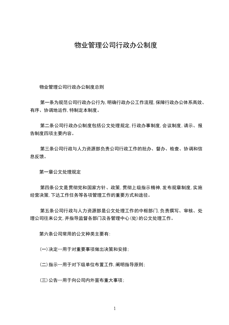 第二条公司行政办公制度包括公文处理规定,行政办事制度,会议制度,请示、报告制度四项主要内容。