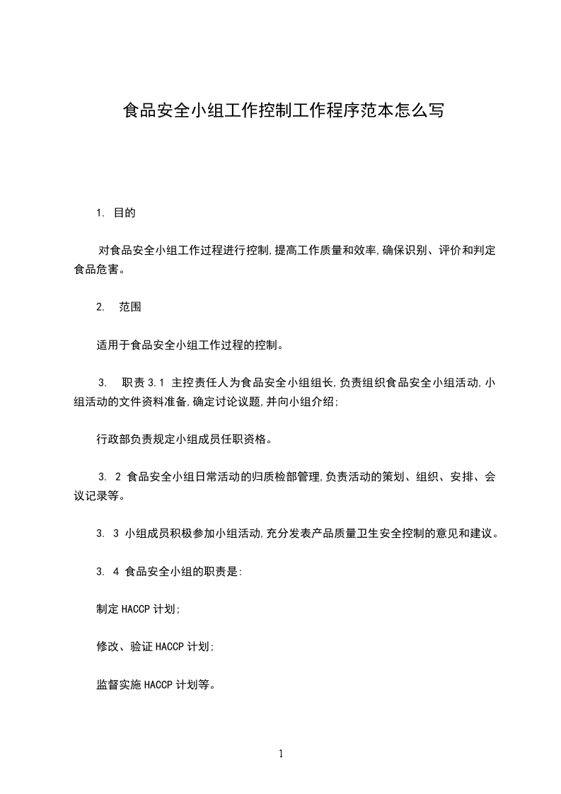 3. 职责3.1 主控责任人为食品安全小组组长,负责组织食品安全小组活动,小组活动的文件资料准备,确定讨论议题,并向小组介绍;