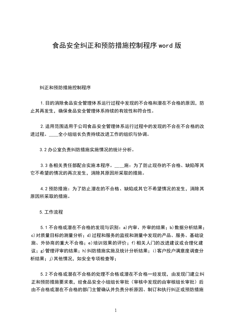 适用于食品安全小组工作过程的控制。