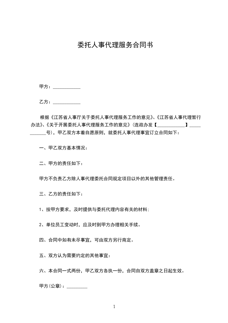 一、甲方接受乙方委托,为乙方提供人事代理服务。