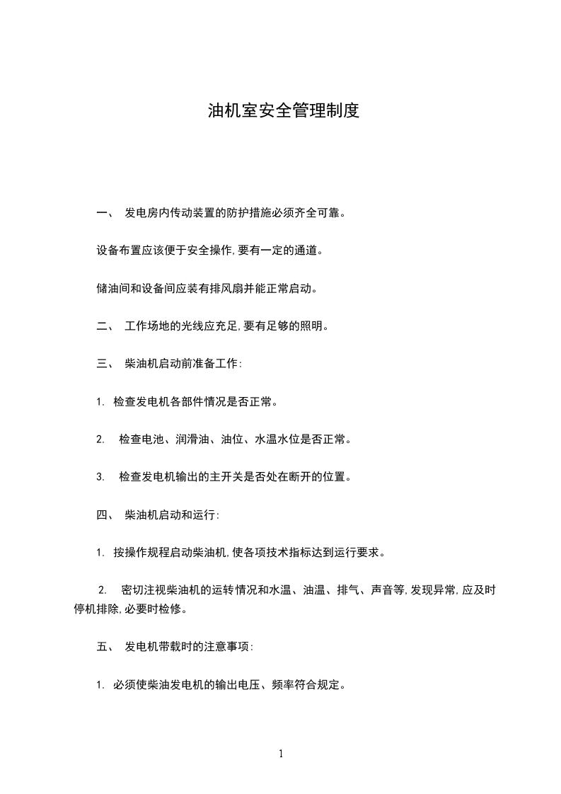 一、 发电房内传动装置的防护措施必须齐全可靠。