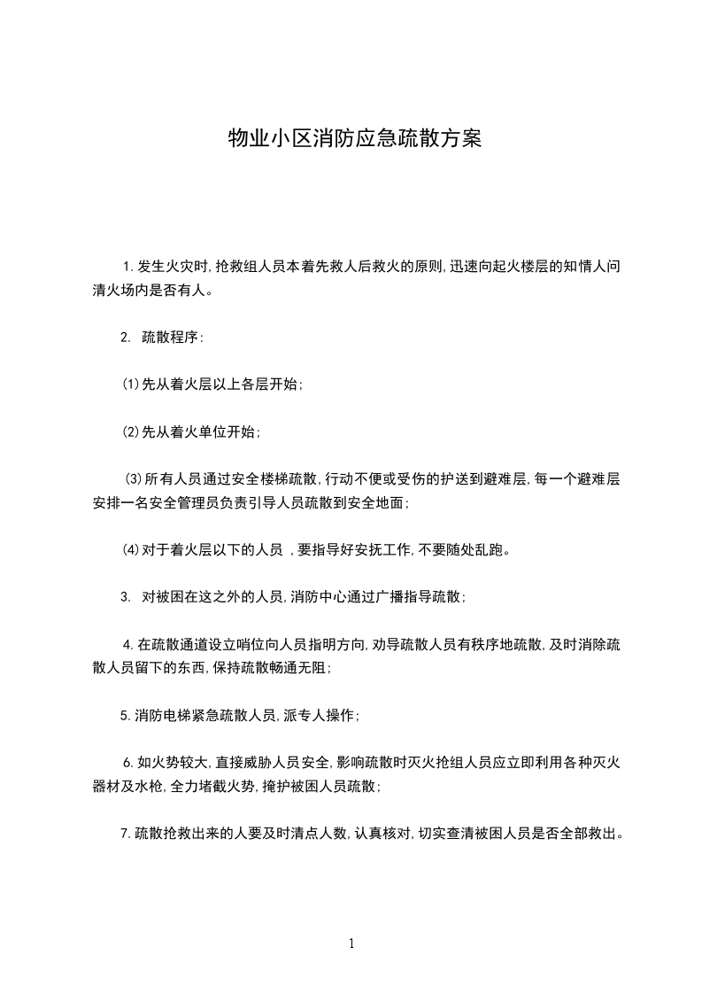 (3)所有人员通过安全楼梯疏散,行动不便或受伤的护送到避难层,每一个避难层安排一名安全管理员负责引导人员疏散到安全地面;