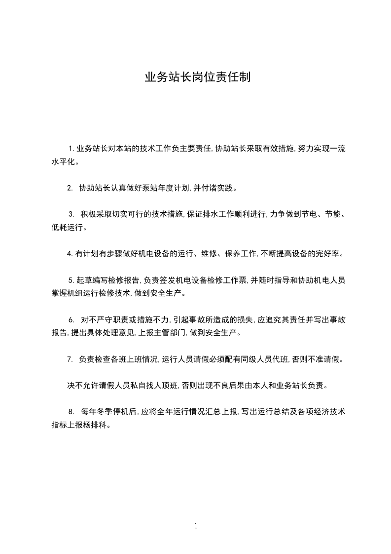 7. 负责检查各班上班情况,运行人员请假必须配有同级人员代班,否则不准请假。