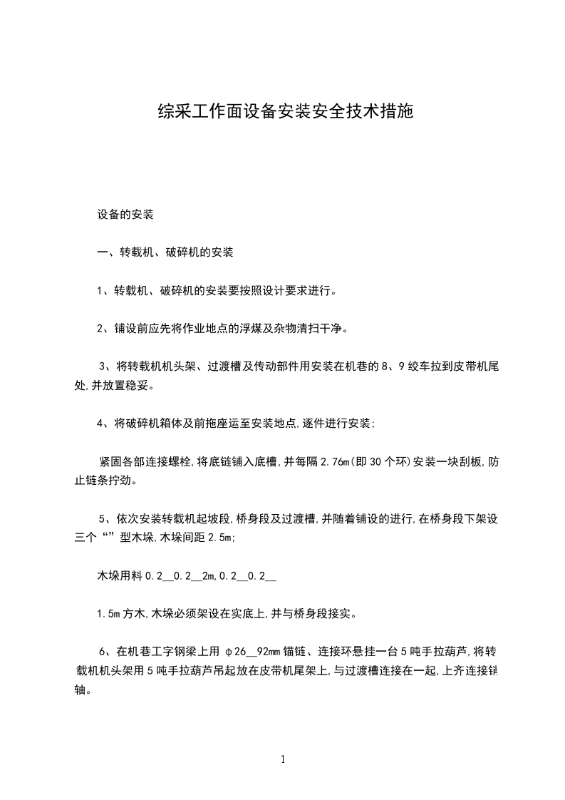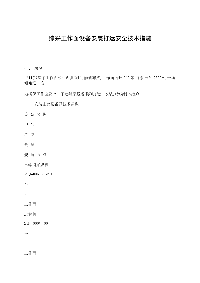 为确保工作面及上、下巷综采设备顺利打运、安装,特编制本措施。