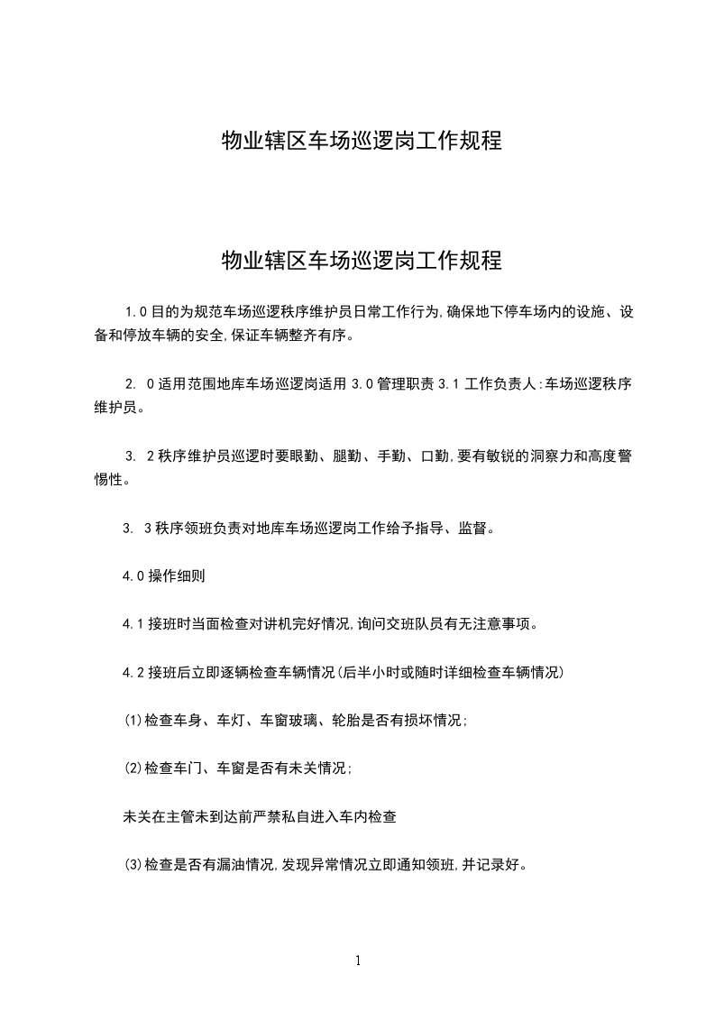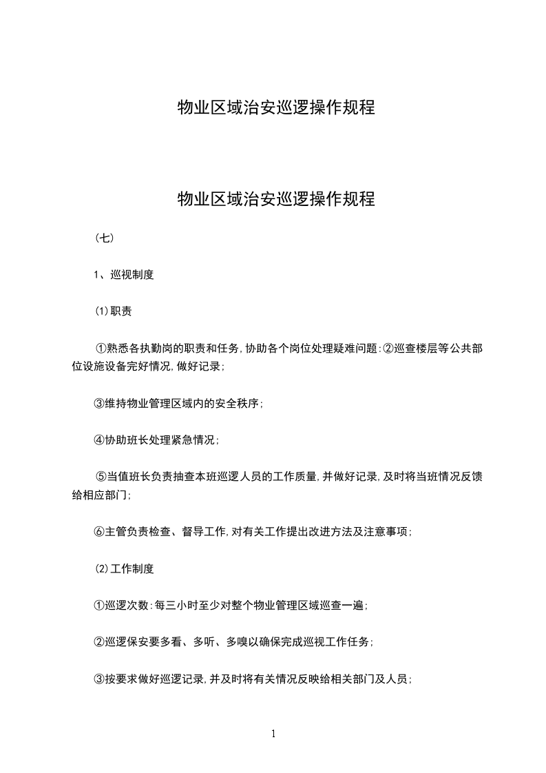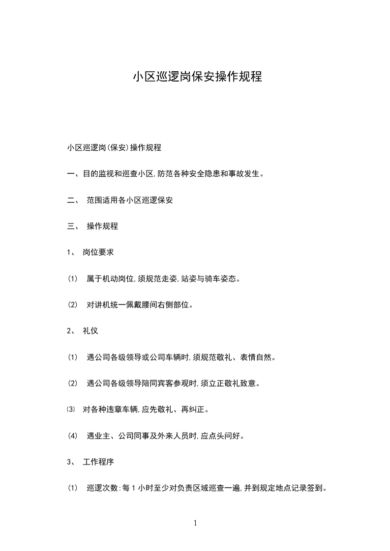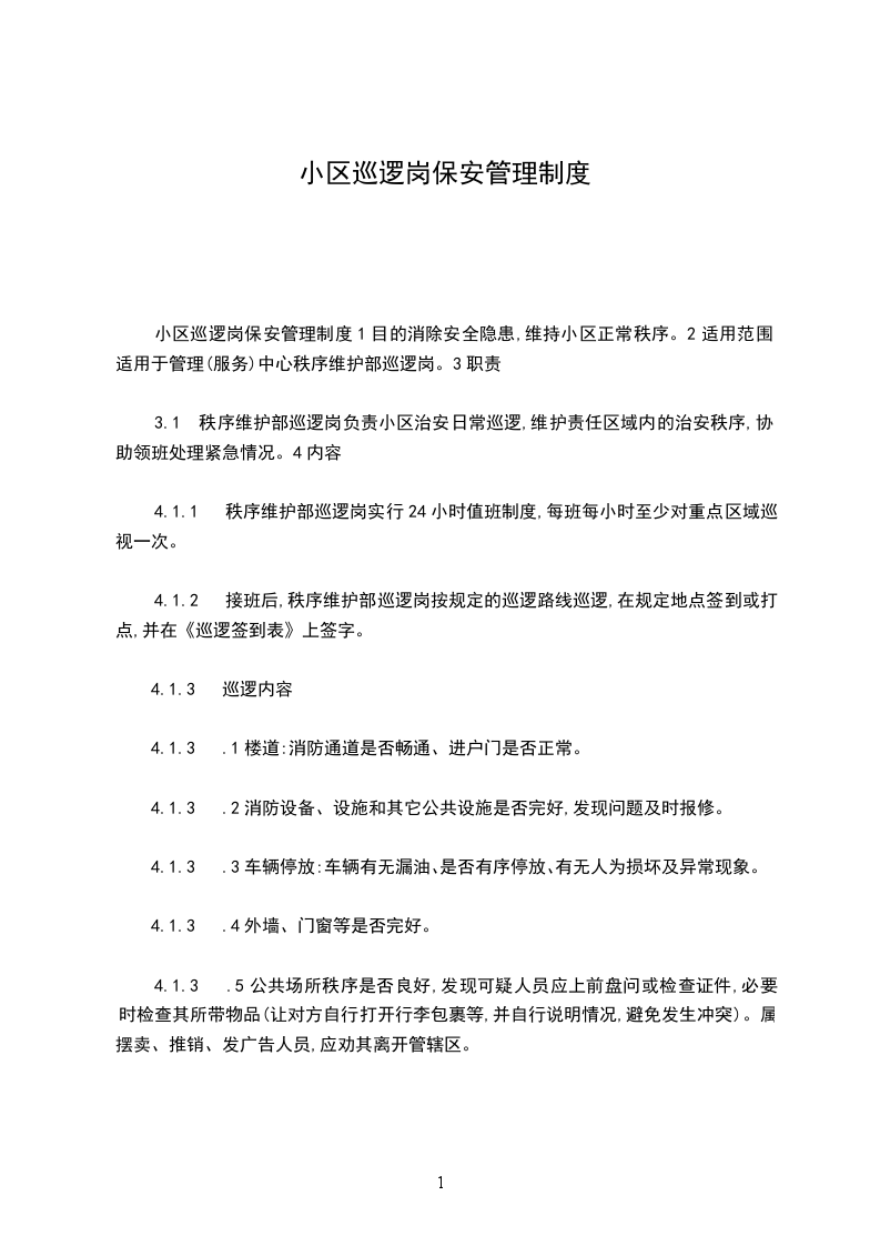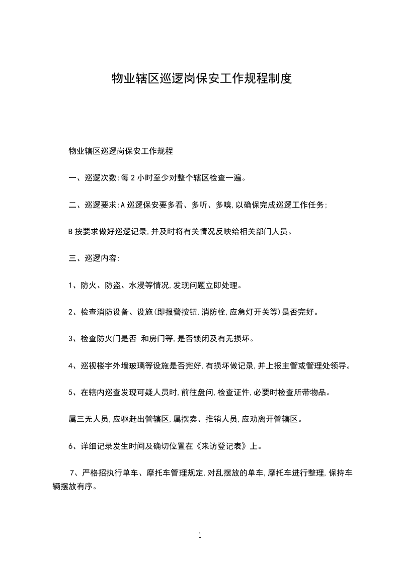 ②巡逻要求:A、巡逻保安要多看、多听、多嗅,以确保完成巡视工作任务。
