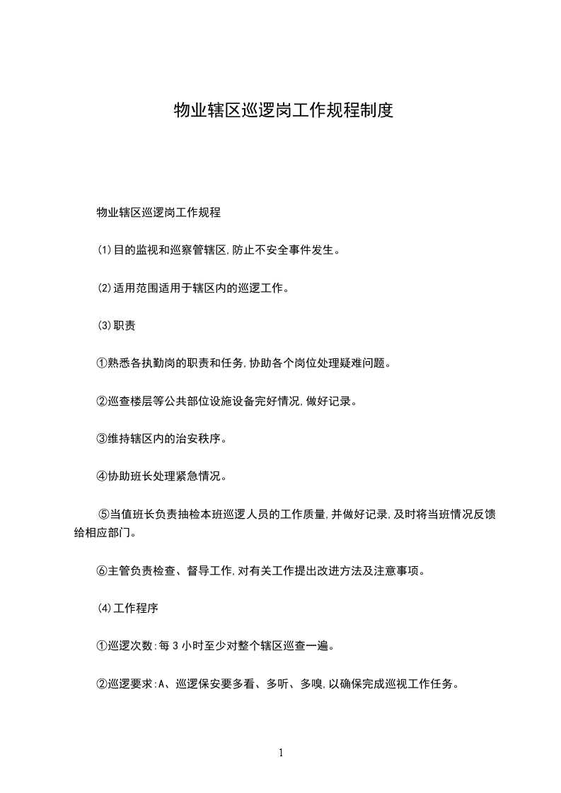 物业辖区巡逻岗工作规程