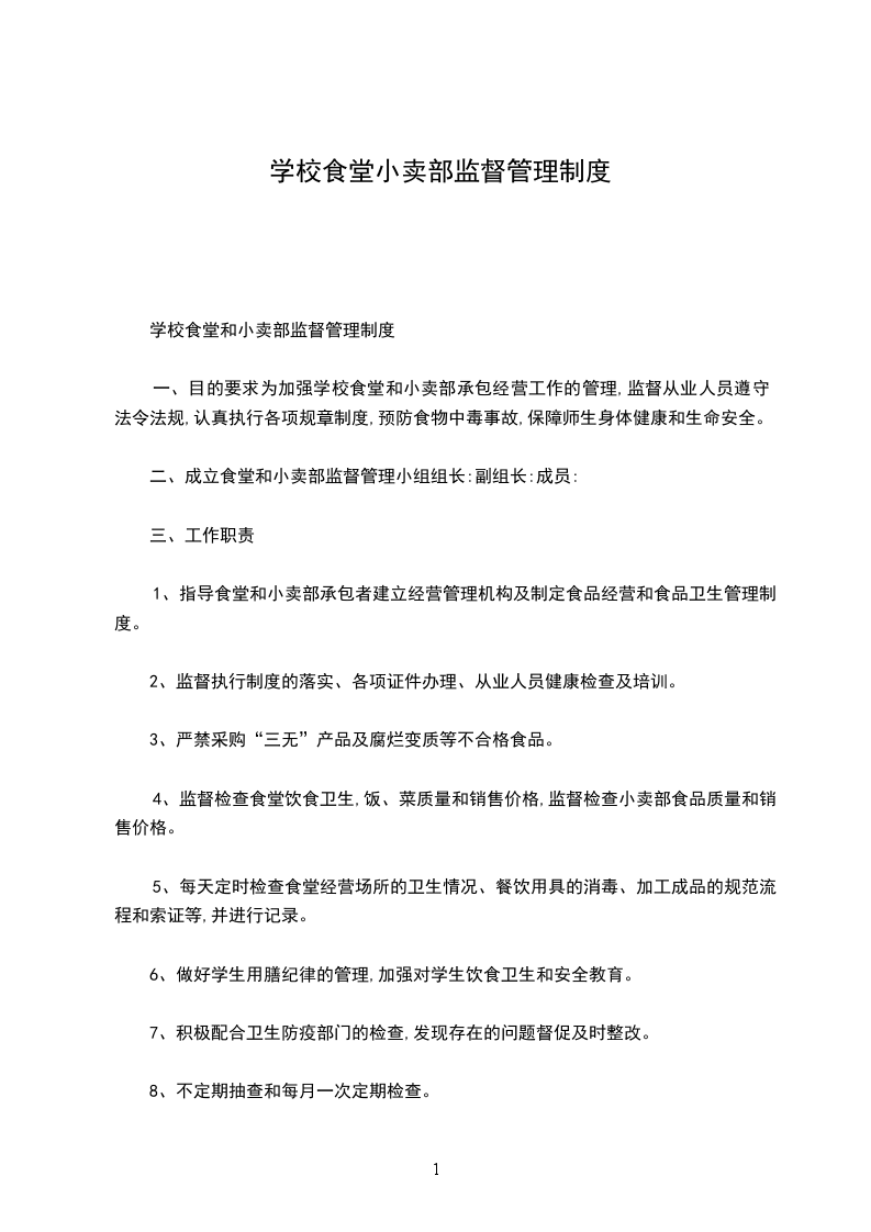 二、成立食堂和小卖部监督管理小组组长:副组长:成员: