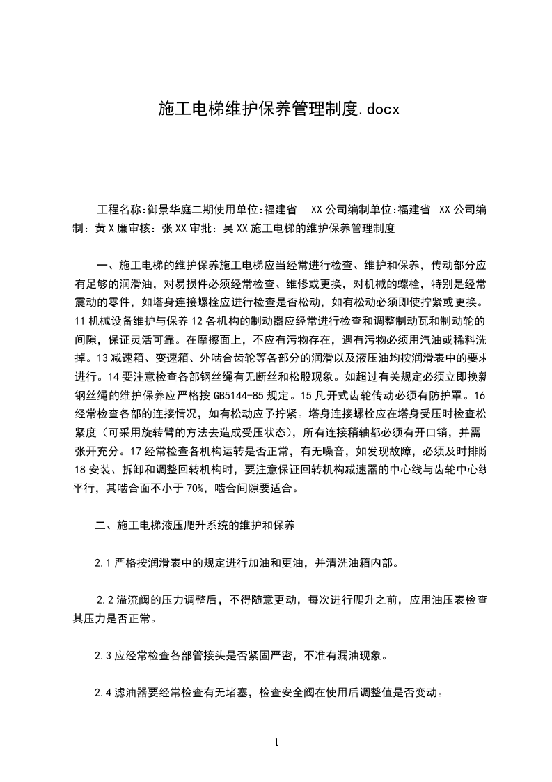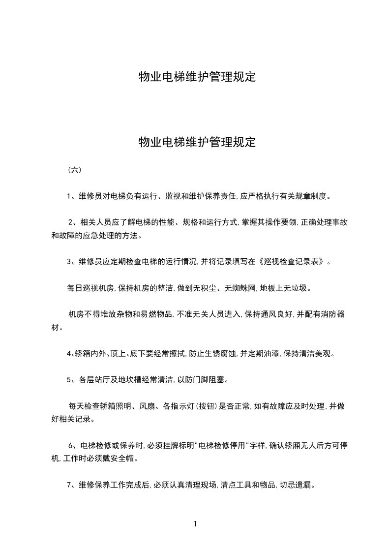 6、电梯检修或保养时,必须挂牌标明"电梯检修停用"字样,确认轿厢无人后方可停机,工作时必须戴安全帽。