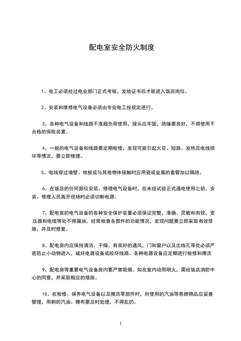 物业辖区变(配)电室安全防火制度