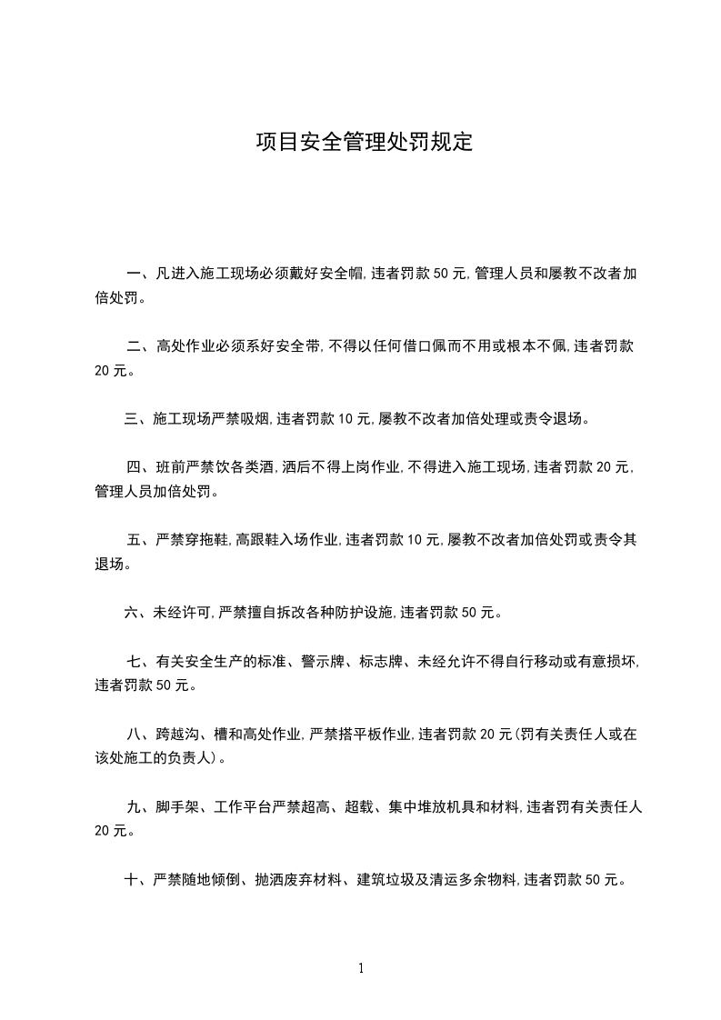 一、凡进入施工现场必须戴好安全帽,违者罚款50元,管理人员和屡教不改者加倍处罚。