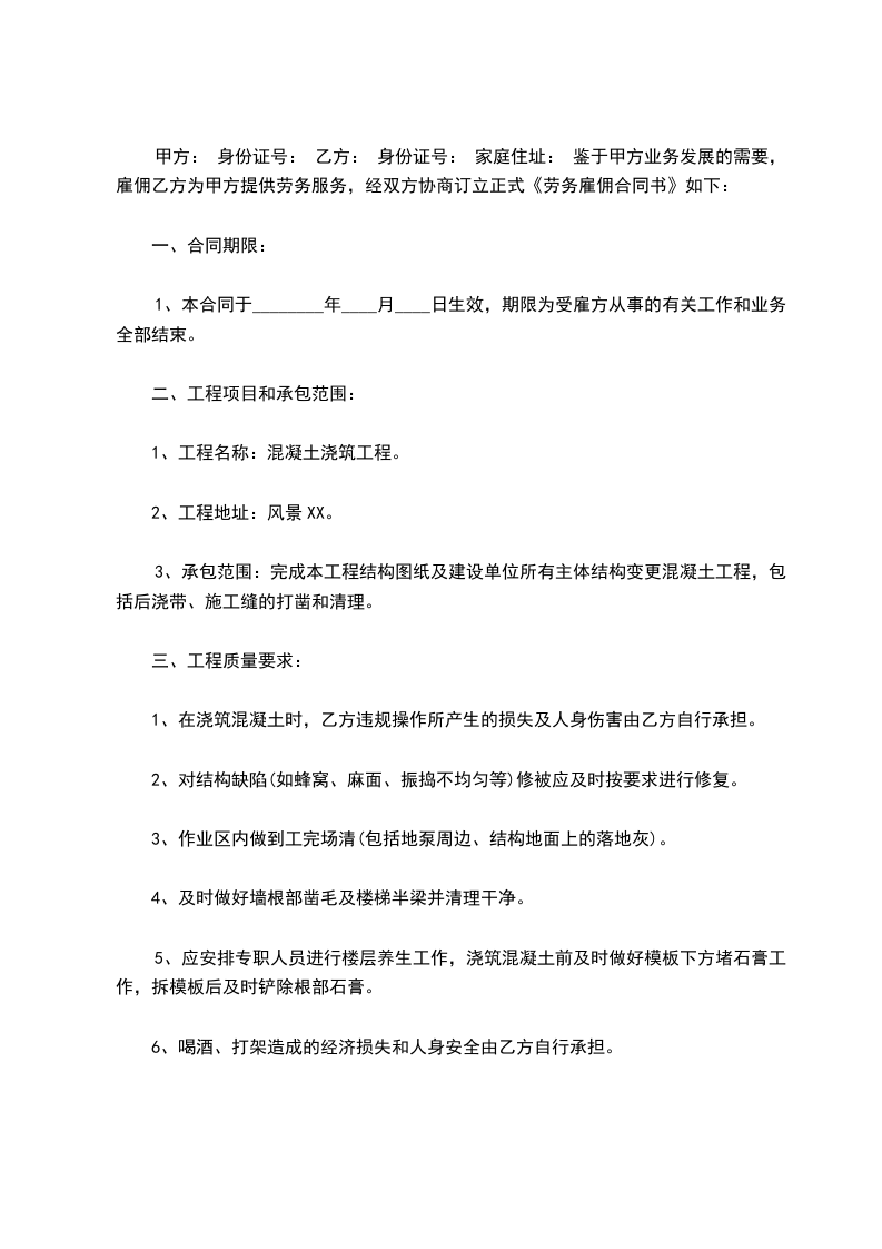 1、在浇筑混凝土时,乙方违规操作所产生的损失及人身伤害由乙方自行承担。