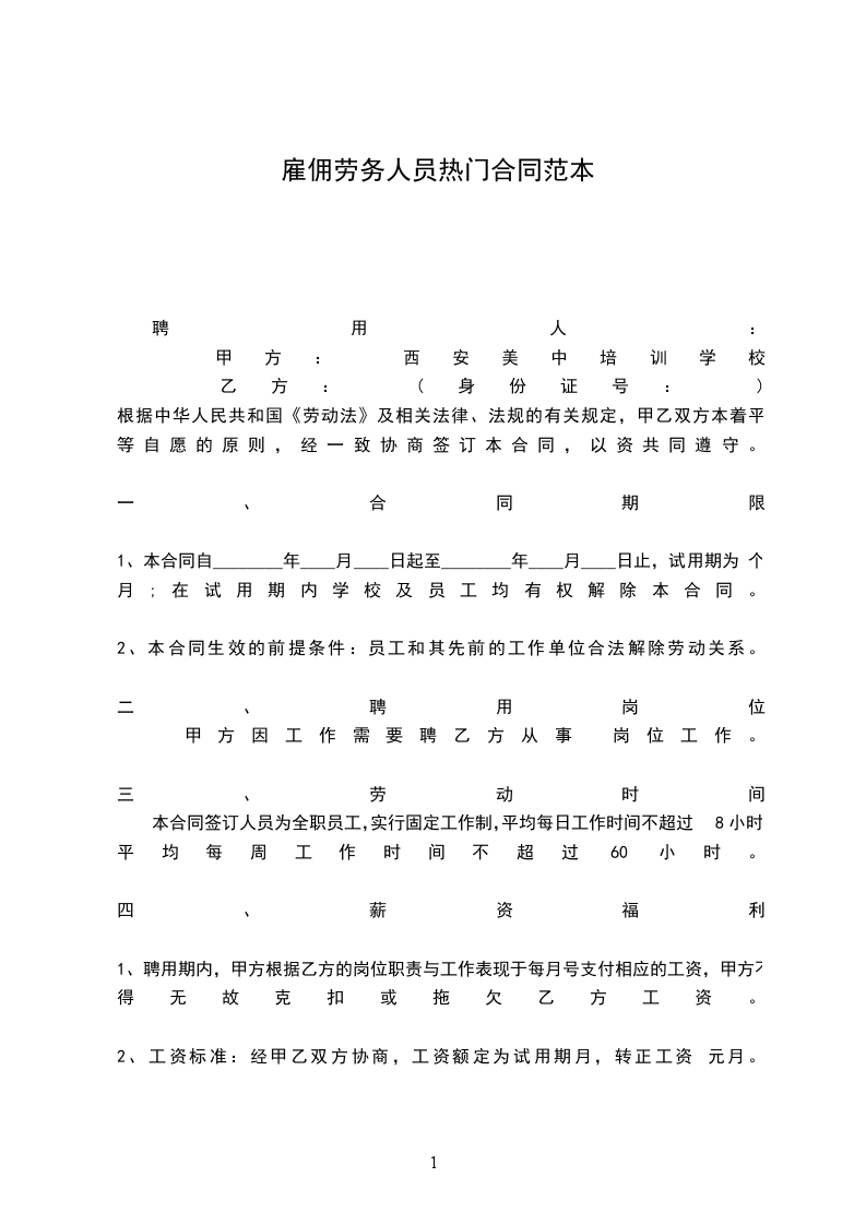 甲方: 身份证号: 乙方: 身份证号: 家庭住址: 鉴于甲方业务发展的需要,雇佣乙方为甲方提供劳务服务,经双方协商订立正式《劳务雇佣合同书》如下: