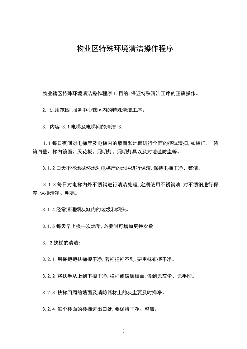 物业辖区特殊环境清洁操作程序1.目的:保证特殊清洁工序的正确操作。