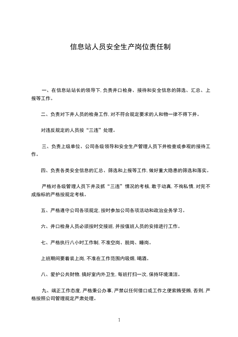 一、在信息站站长的领导下,负责井口检身、接待和安全信息的筛选、汇总、上报等工作。