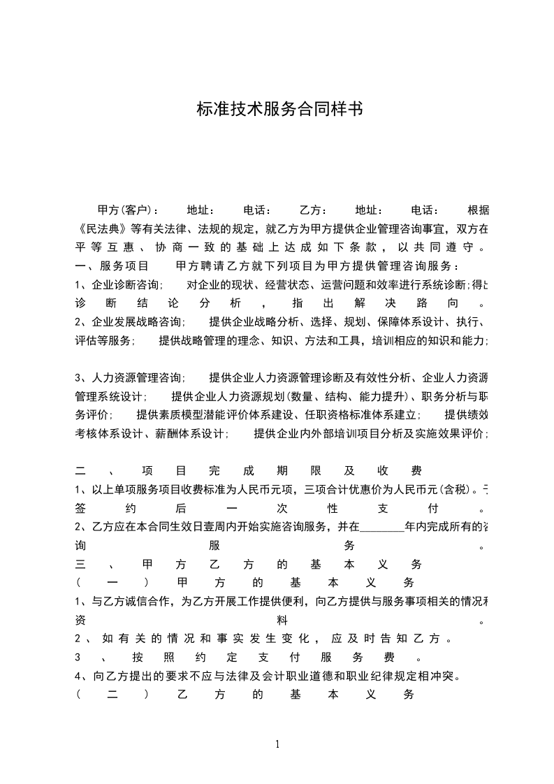 甲方(客户): 地址: 电话: 乙方: 地址: 电话: 根据《民法典》等有关法律、法规的规定,就乙方为甲方提供企业管理咨询事宜,双方在平等互惠、协商一致的基础上达成如下条款,以共同遵守。