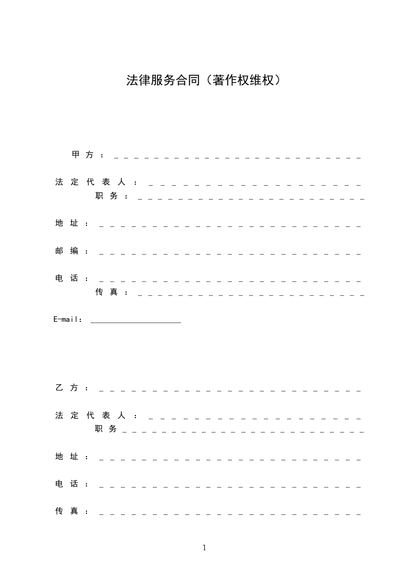 1.甲方聘请乙方担任著作权维权专项法律顾问,通过乙方加入的中国律师知识产权维权业务协作网各省、自治区、直辖市成员所在中华人民共和国行政辖区内全面维护甲方的著作权合法权益。