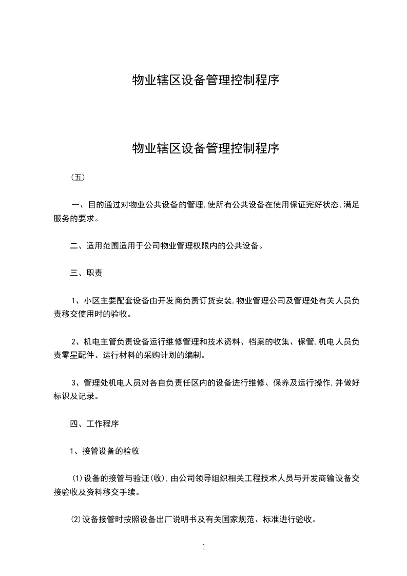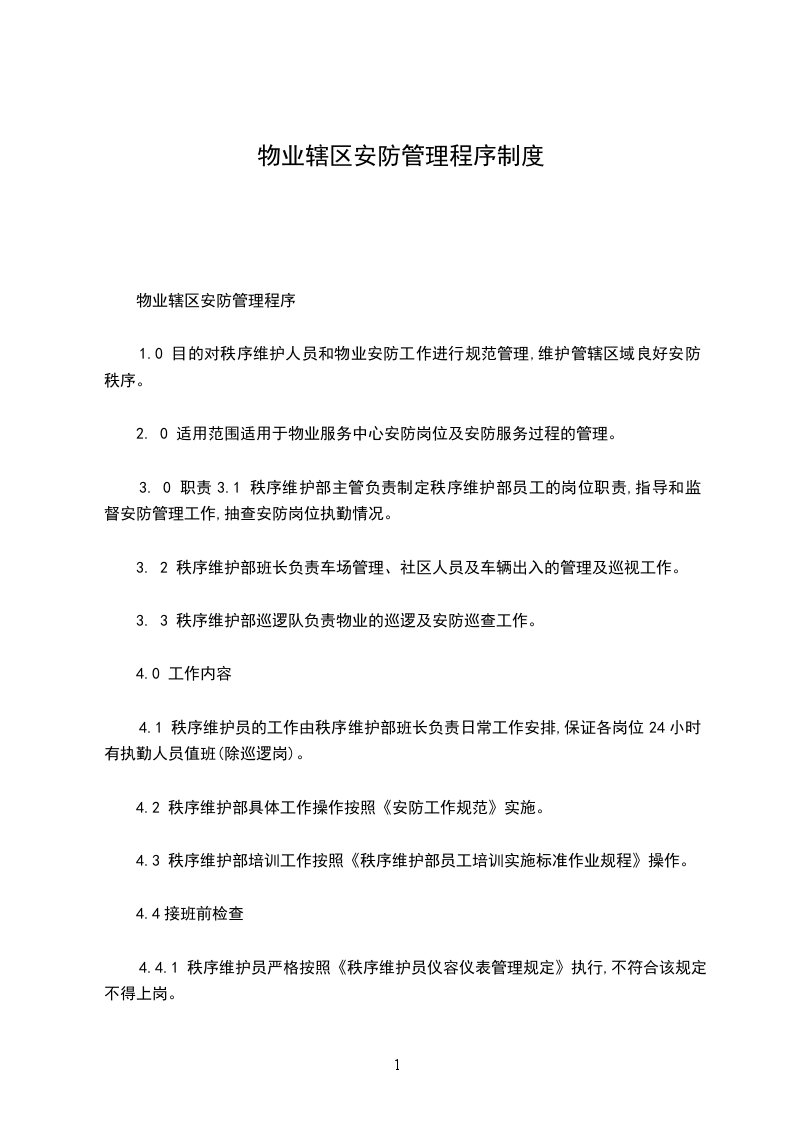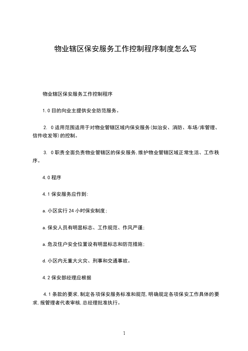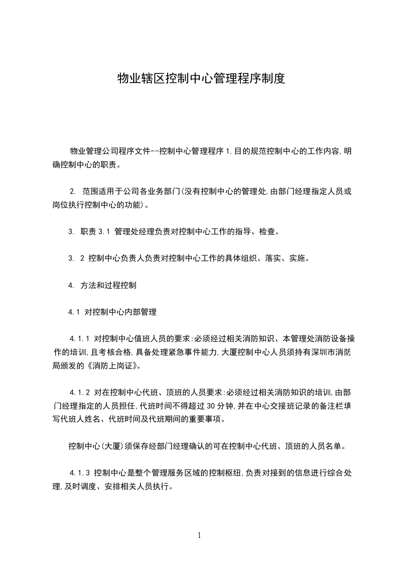 物业管理公司程序文件--控制中心管理程序1.目的规范控制中心的工作内容,明确控制中心的职责。