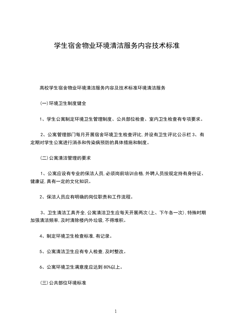 高校学生宿舍物业环境清洁服务内容及技术标准环境清洁服务