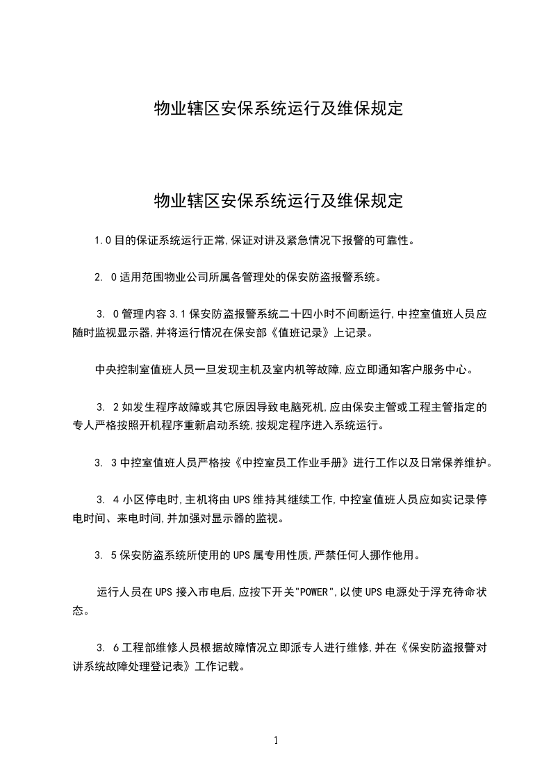 3. 5保安防盗系统所使用的UPS属专用性质,严禁任何人挪作他用。