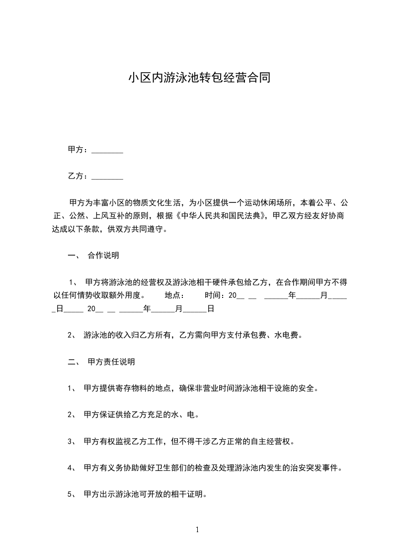 3.3.1 1本泳池保留时封闭地和其它用途的权利。