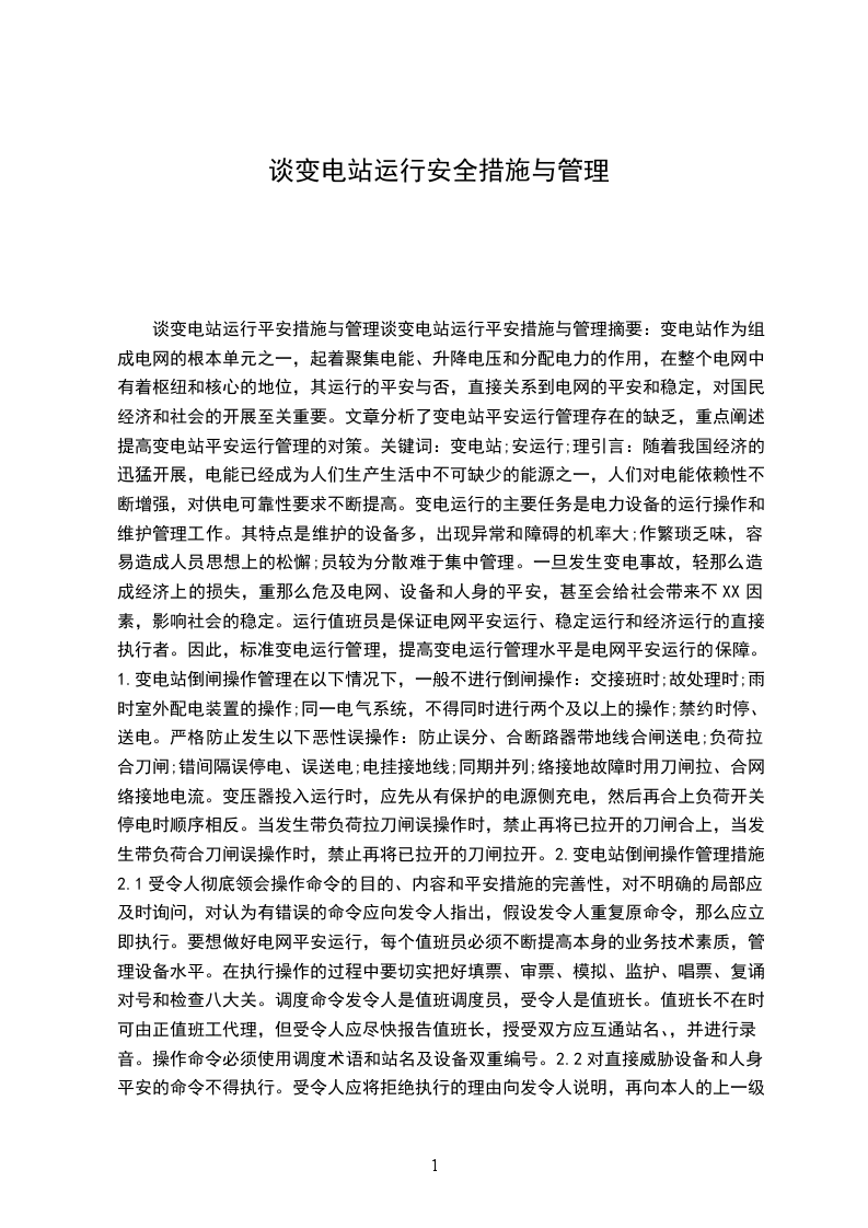 6、负责新投产变电所或大型设备操作的监护工作,负责对部分停电设备恢复送电操作等工作。