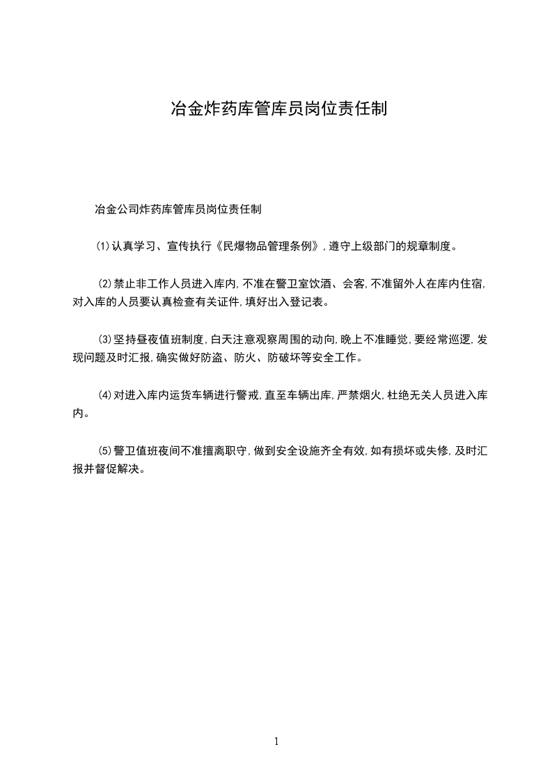 冶金公司炸药库管库员岗位责任制