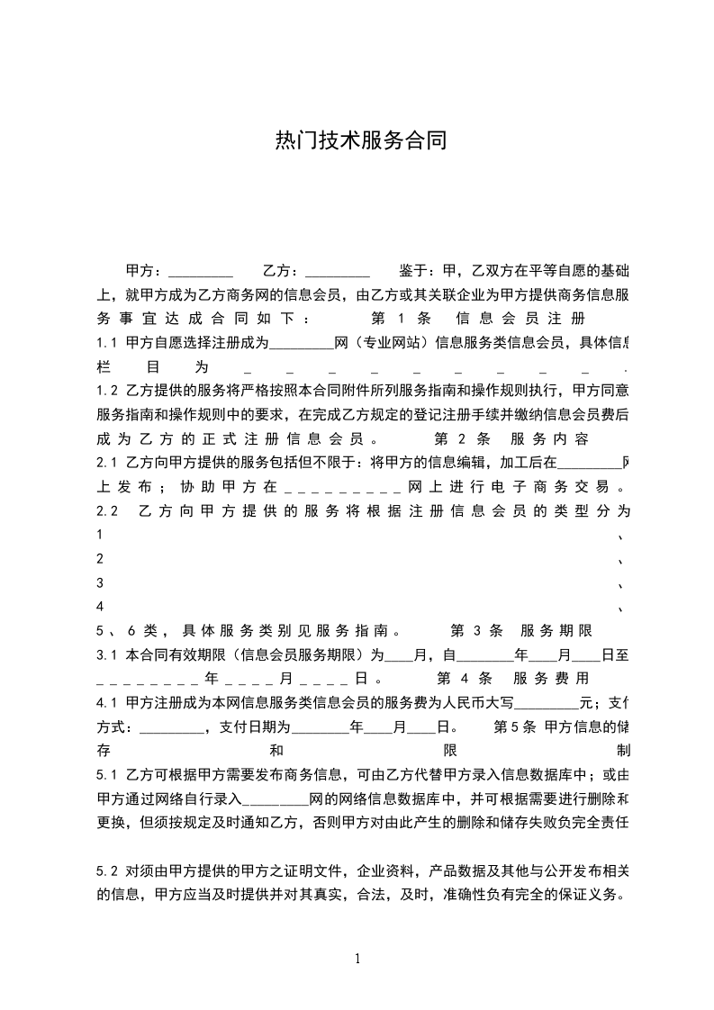 1.1 甲方自愿选择注册成为_________网(专业网站)信息服务类信息会员,具体信息栏目为_________.