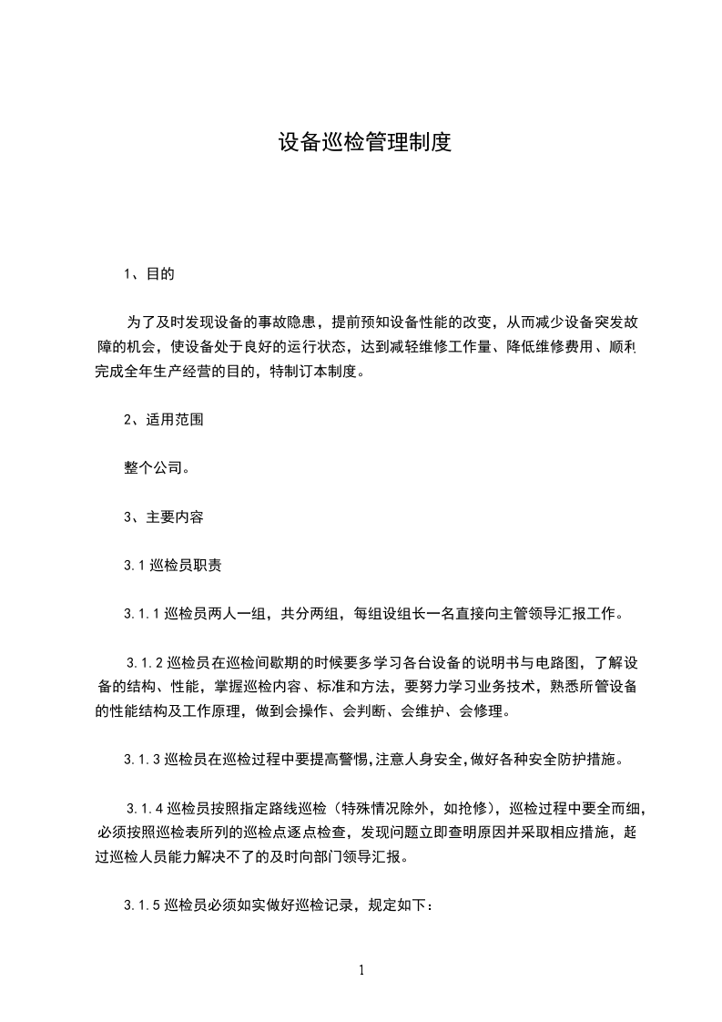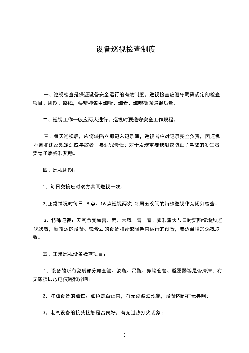 1、巡视值班人员必须按本系统规定的时间和项目巡视检查管辖下的设备。