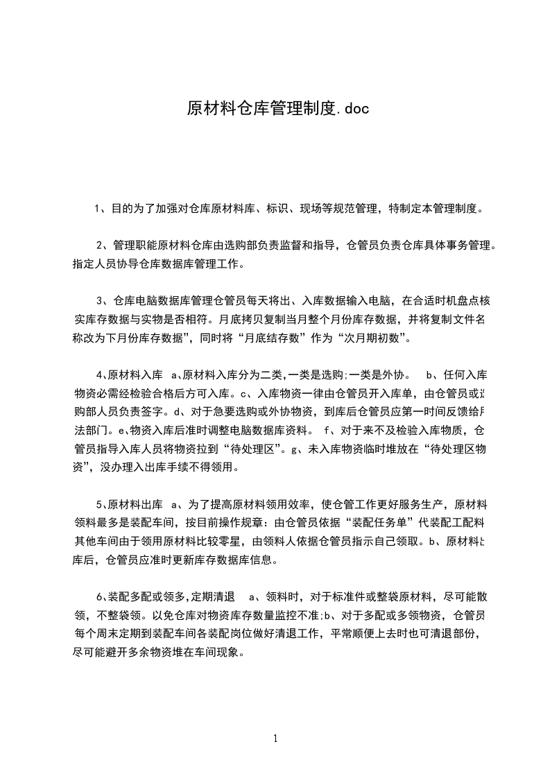 为了做好燃料、原材料仓库的安全管理工作,以及生产区域的文明生产和卫生管理,杜绝可能的物料混仓质量事故,特制订如下规定: