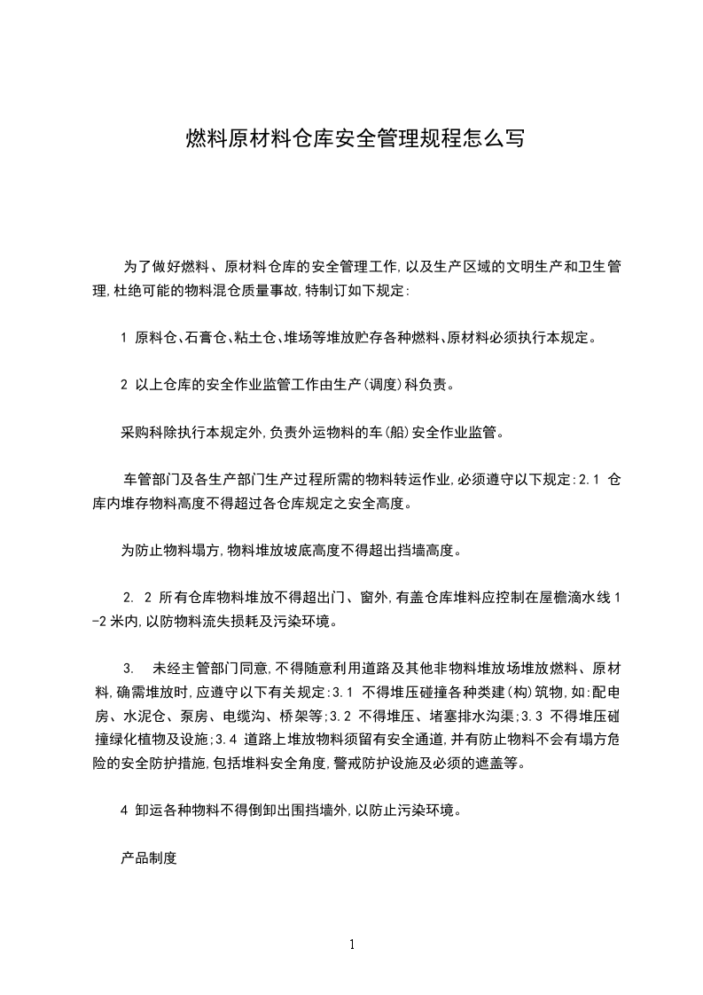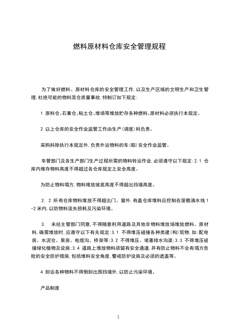 1 原料仓、石膏仓、粘土仓、堆场等堆放贮存各种燃料、原材料必须执行本规定。