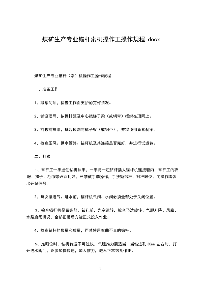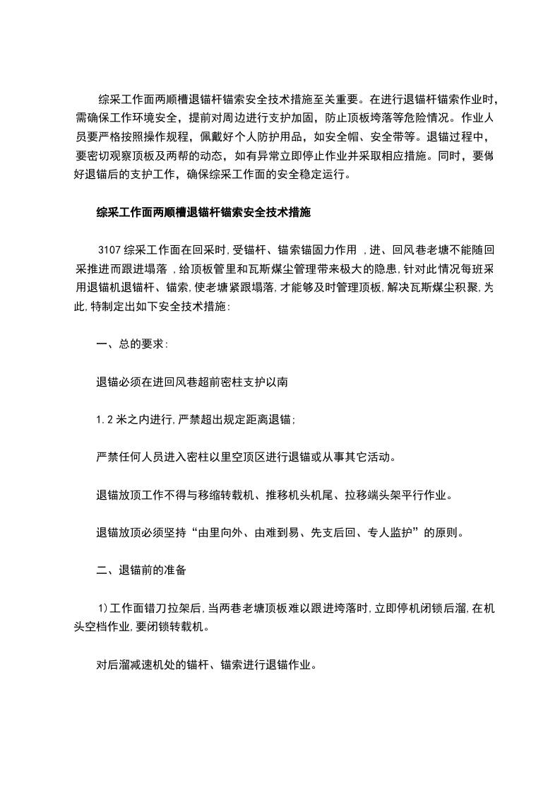 7)退锚索过程中,队干必须现场监督指挥,协调各工序,搞好现场互联保。