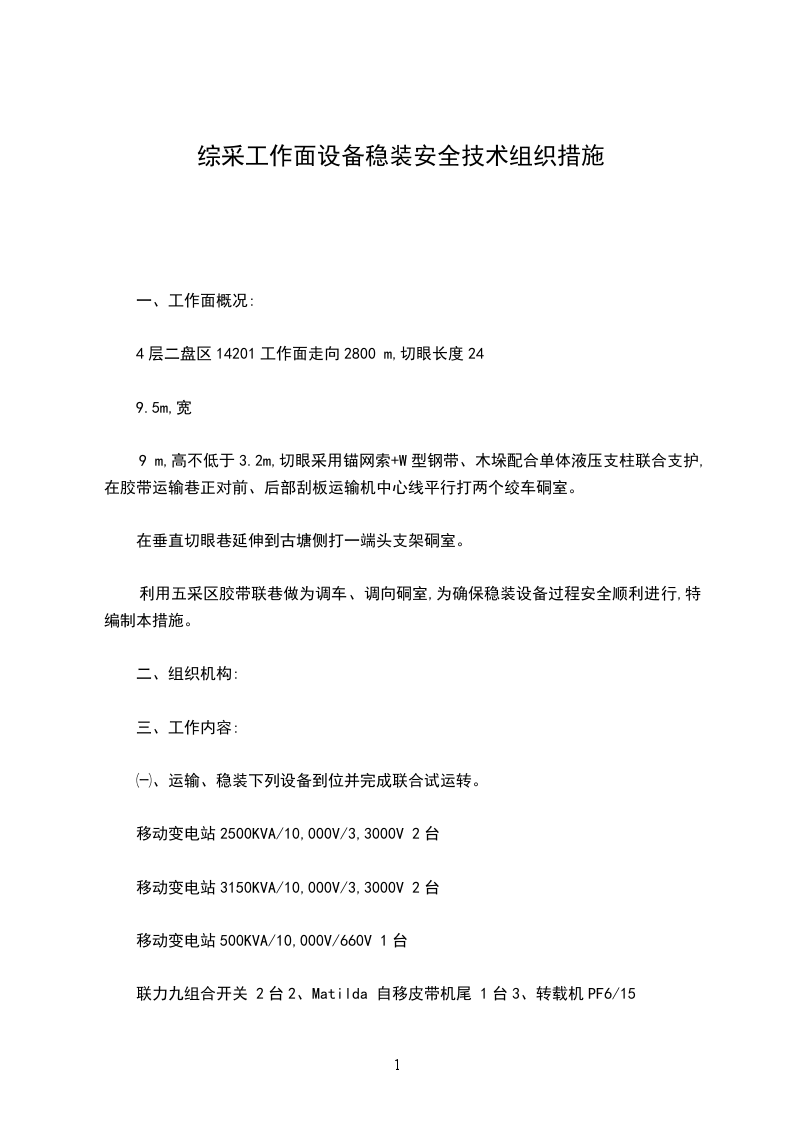 25、稳装过程中,稳装地点的工作要按序进行,不得出现窝工现象。