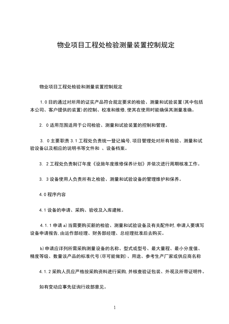 3. 0主要职责3.1工程处负责统一登记编号,项目管理处对所有检验、测量和试验设备以及相应的说明书等文件和 、设备档案。