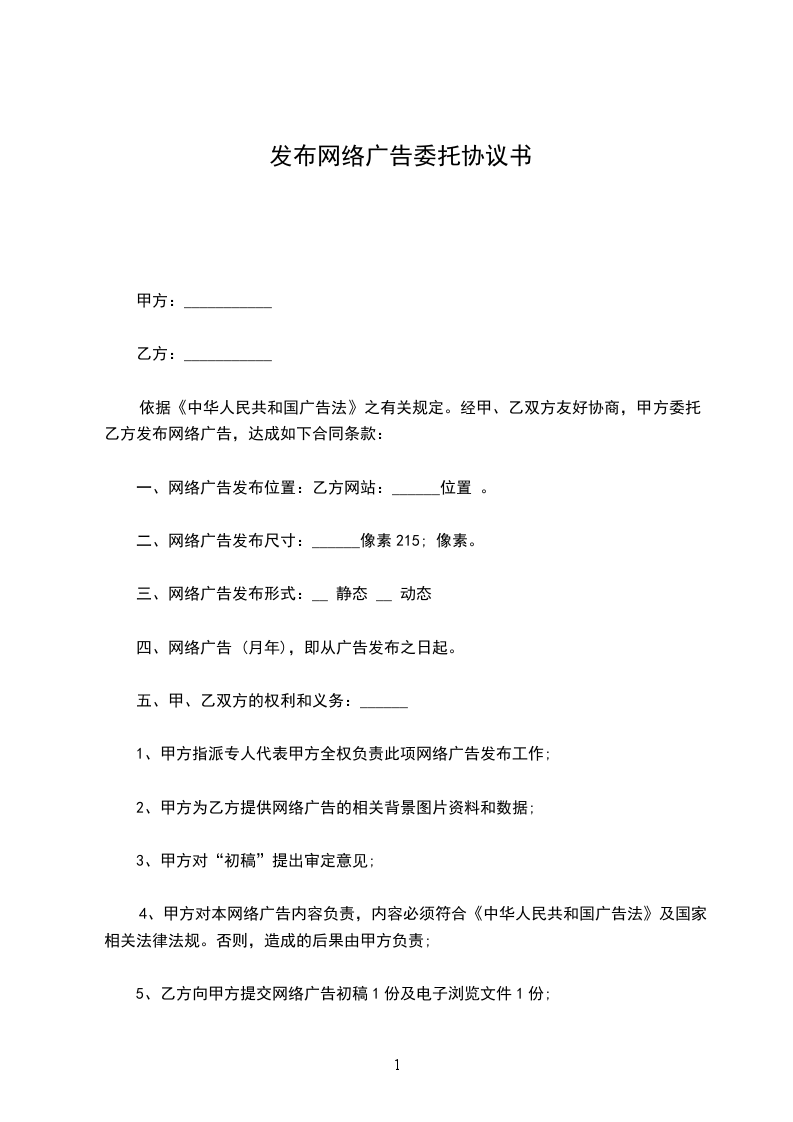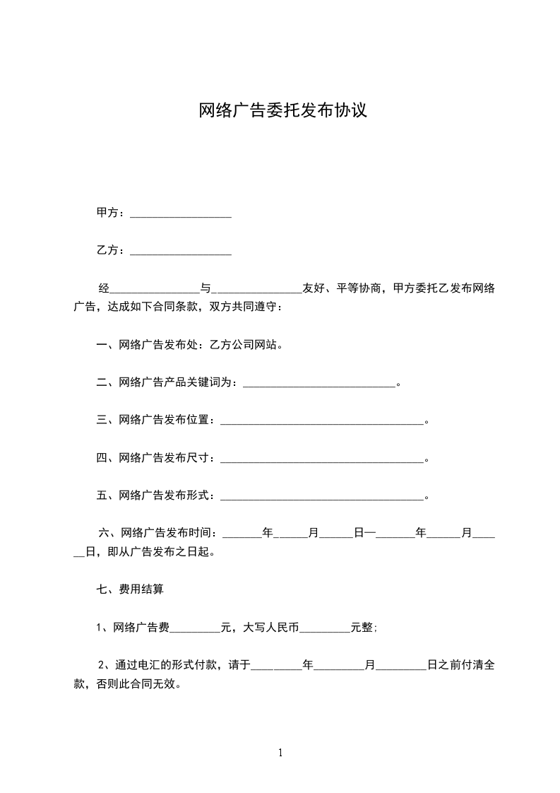 一、甲方委托乙方于_年_月_日至_年_月_日期间发布__广告。