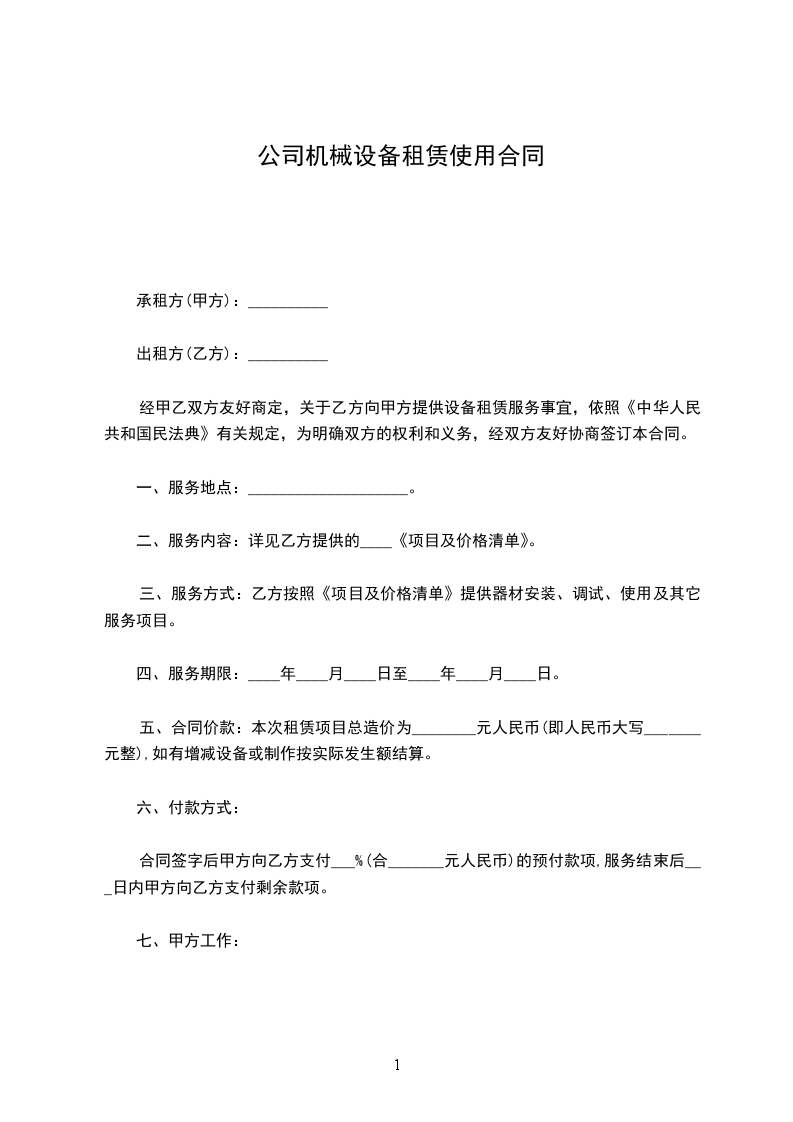 经甲乙双方友好商定,关于乙方向甲方提供设备租赁服务事宜,依照《中华人民共和国民法典》有关规定,为明确双方的权利和义务,经双方友好协商签订本合同。