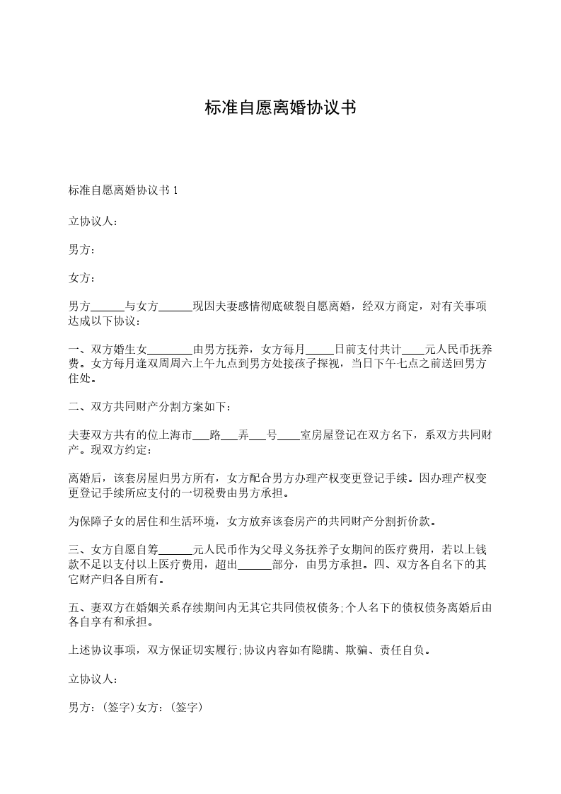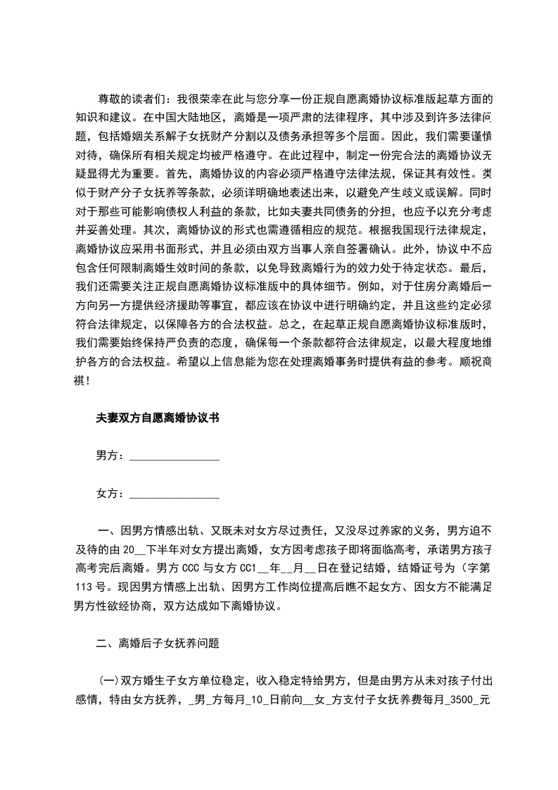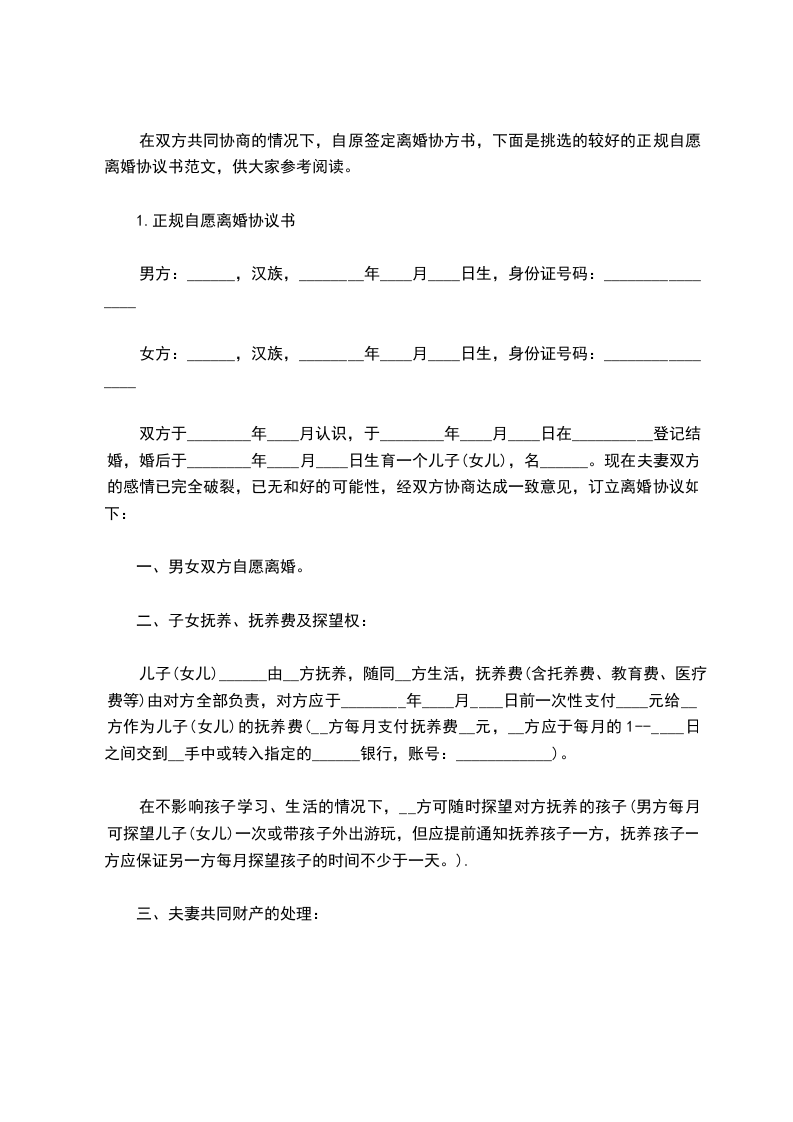 在双方共同协商的情况下,自原签定离婚协方书,下面是挑选的较好的正规自愿离婚协议书范文,供大家参考阅读。