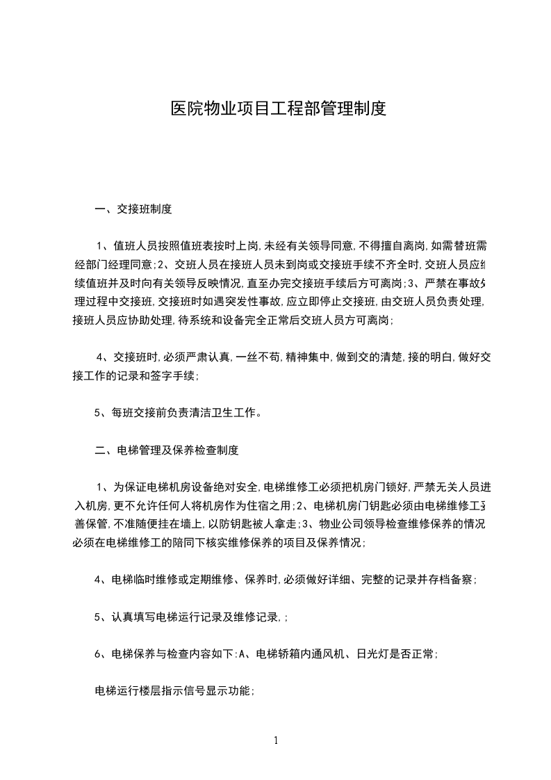 二、电梯管理及保养检查制度
