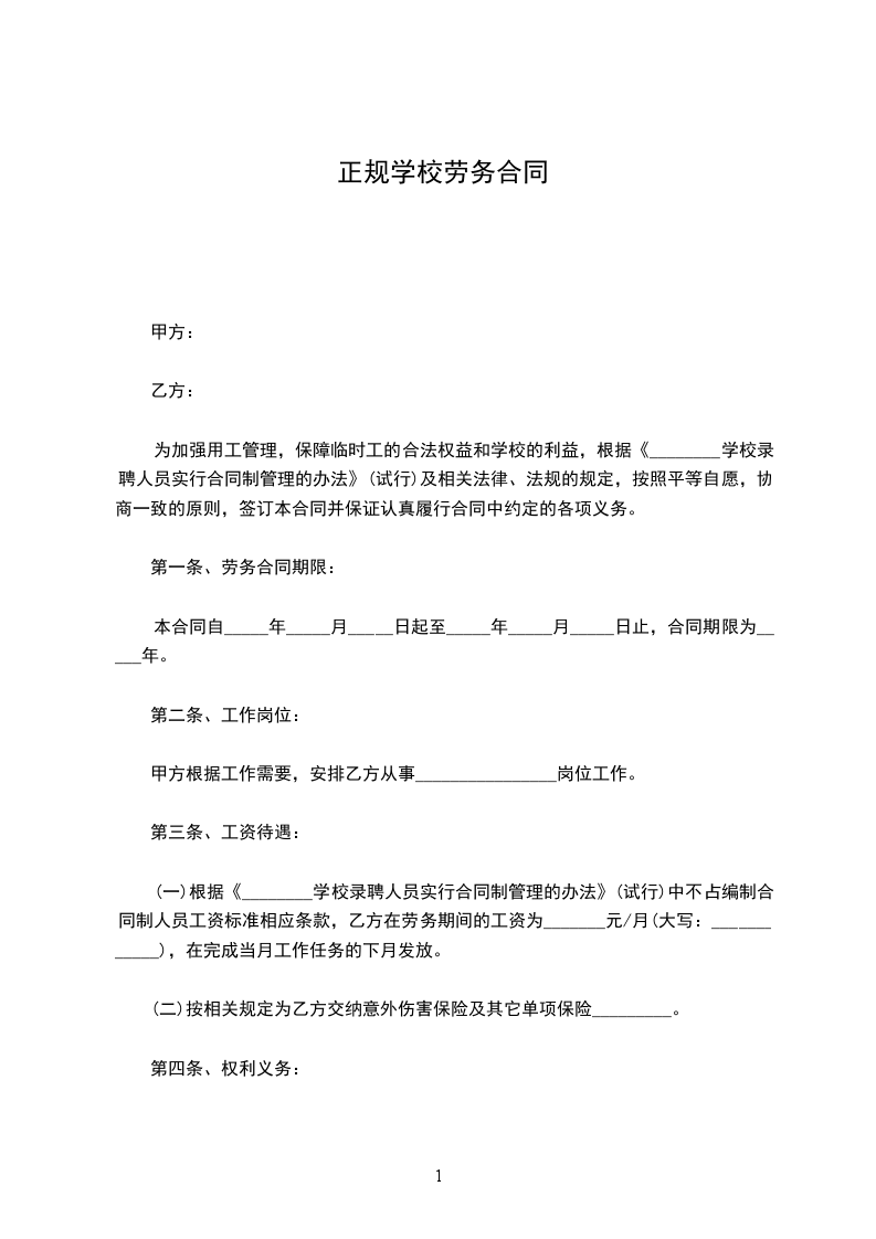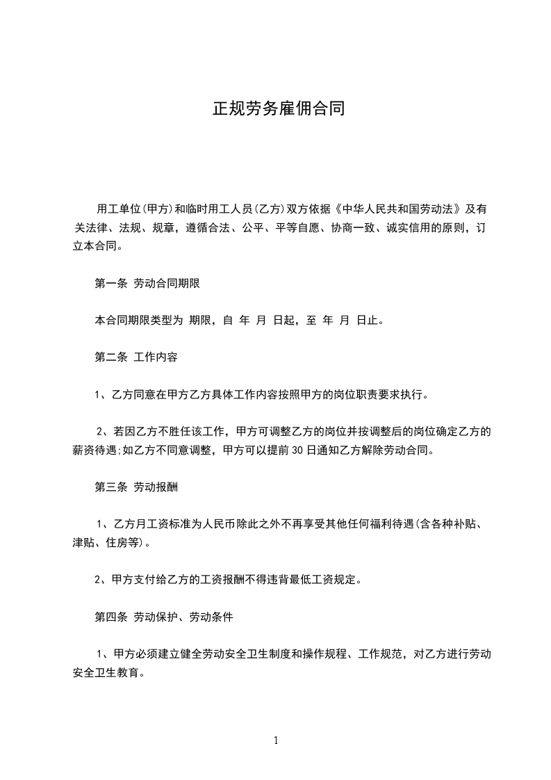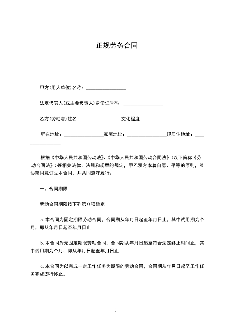 一、合同的类型和期限
