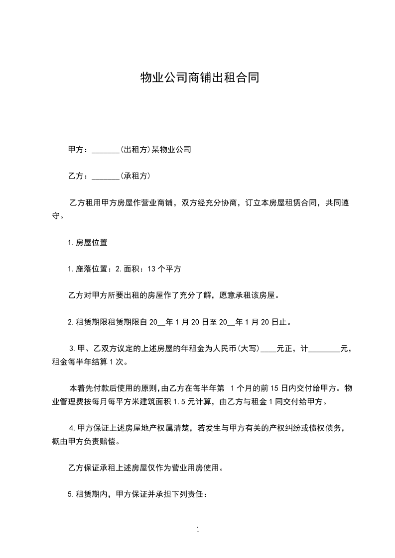甲方:(出租方)某物业公司乙方:(承租方)