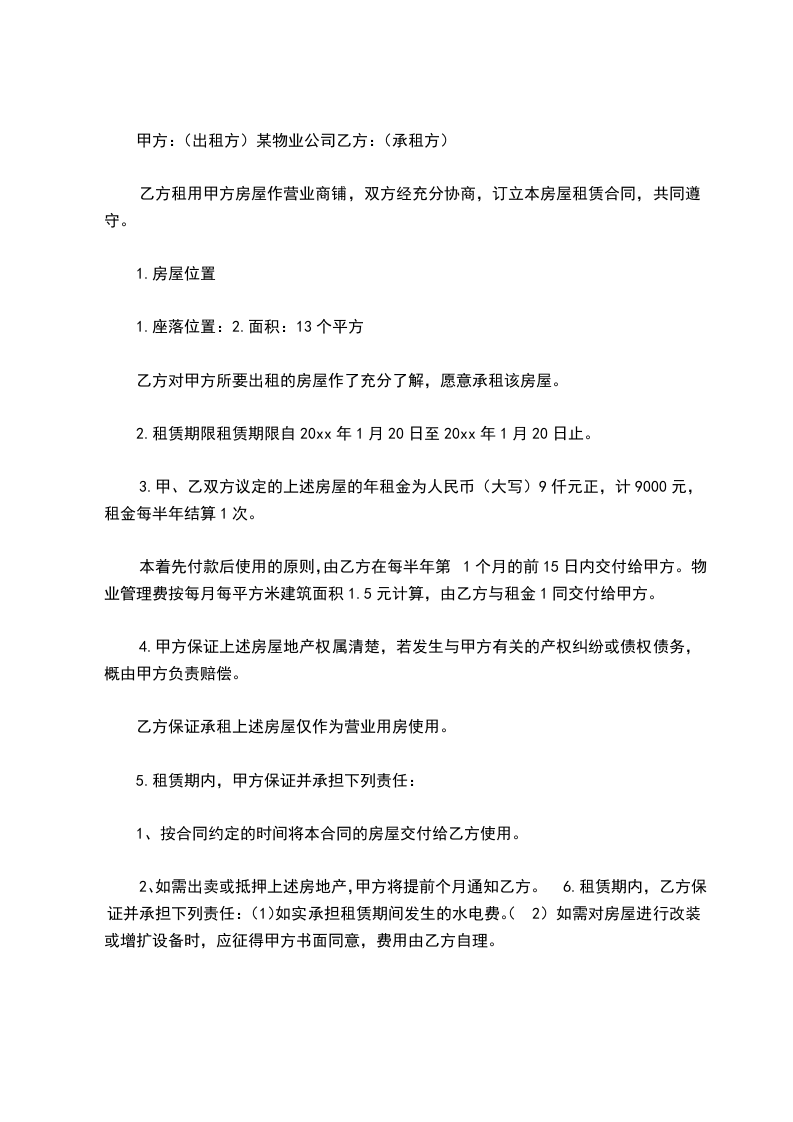 2.租赁期限租赁期限自20xx年1月20日至20xx年1月20日止。