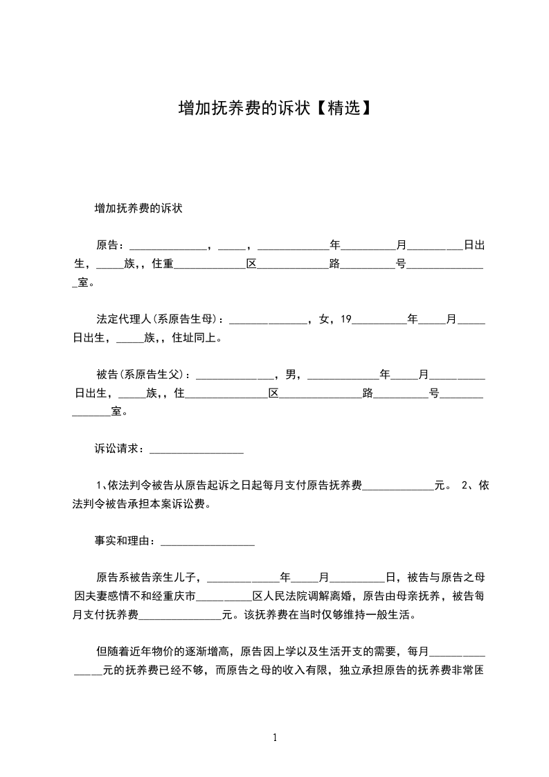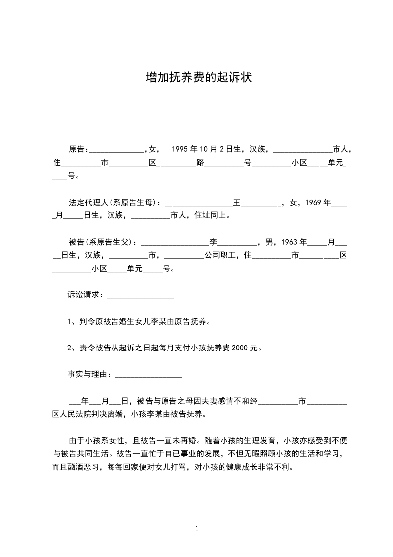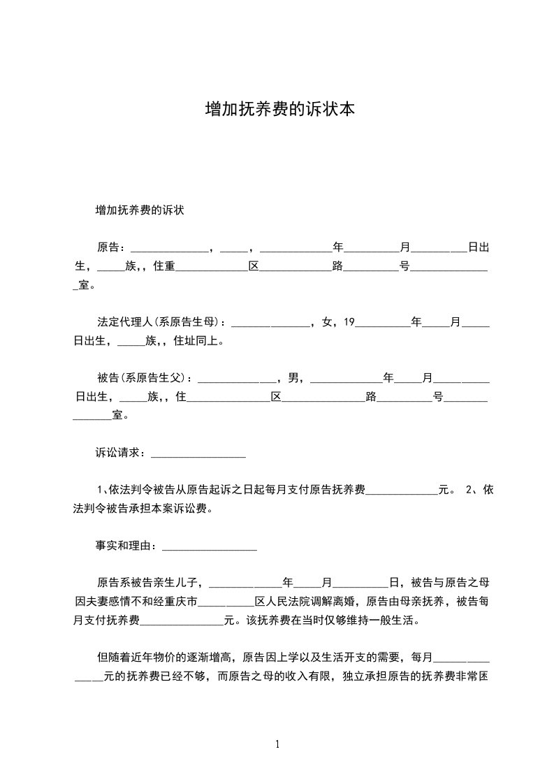 1、请求法院依法判令被告给原告增加抚养费,由原来的每月___元增加到每月___元。