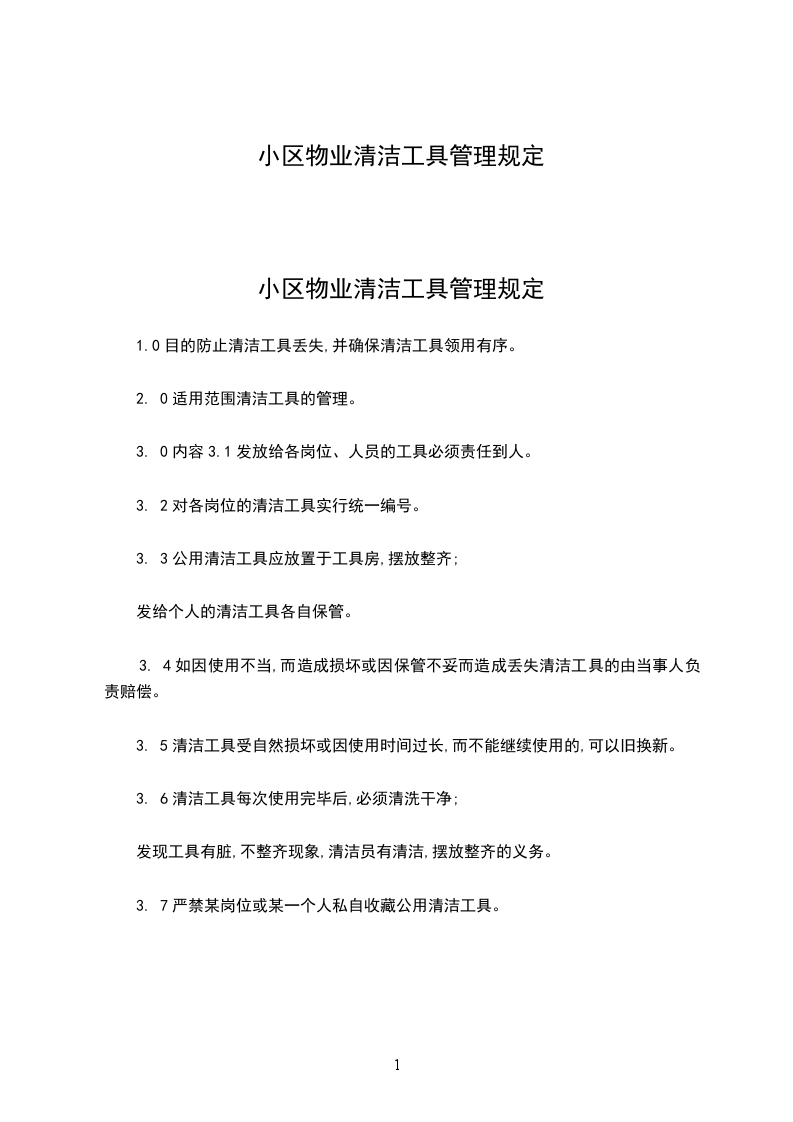 小区物业清洁工具管理规定